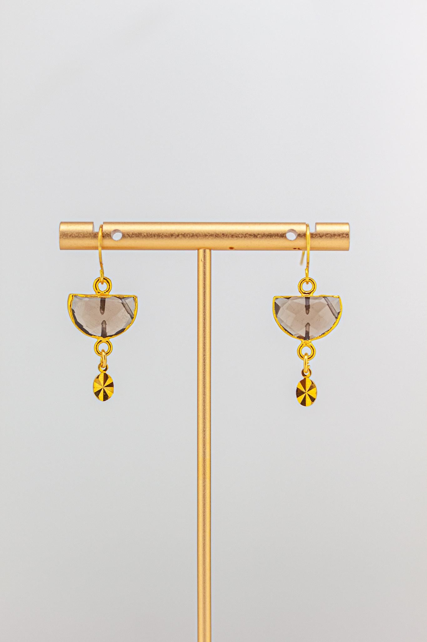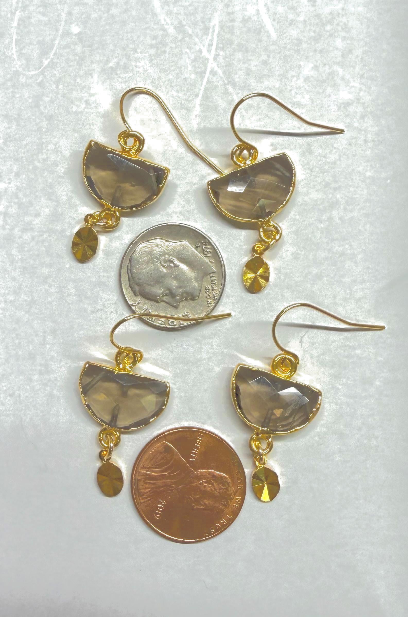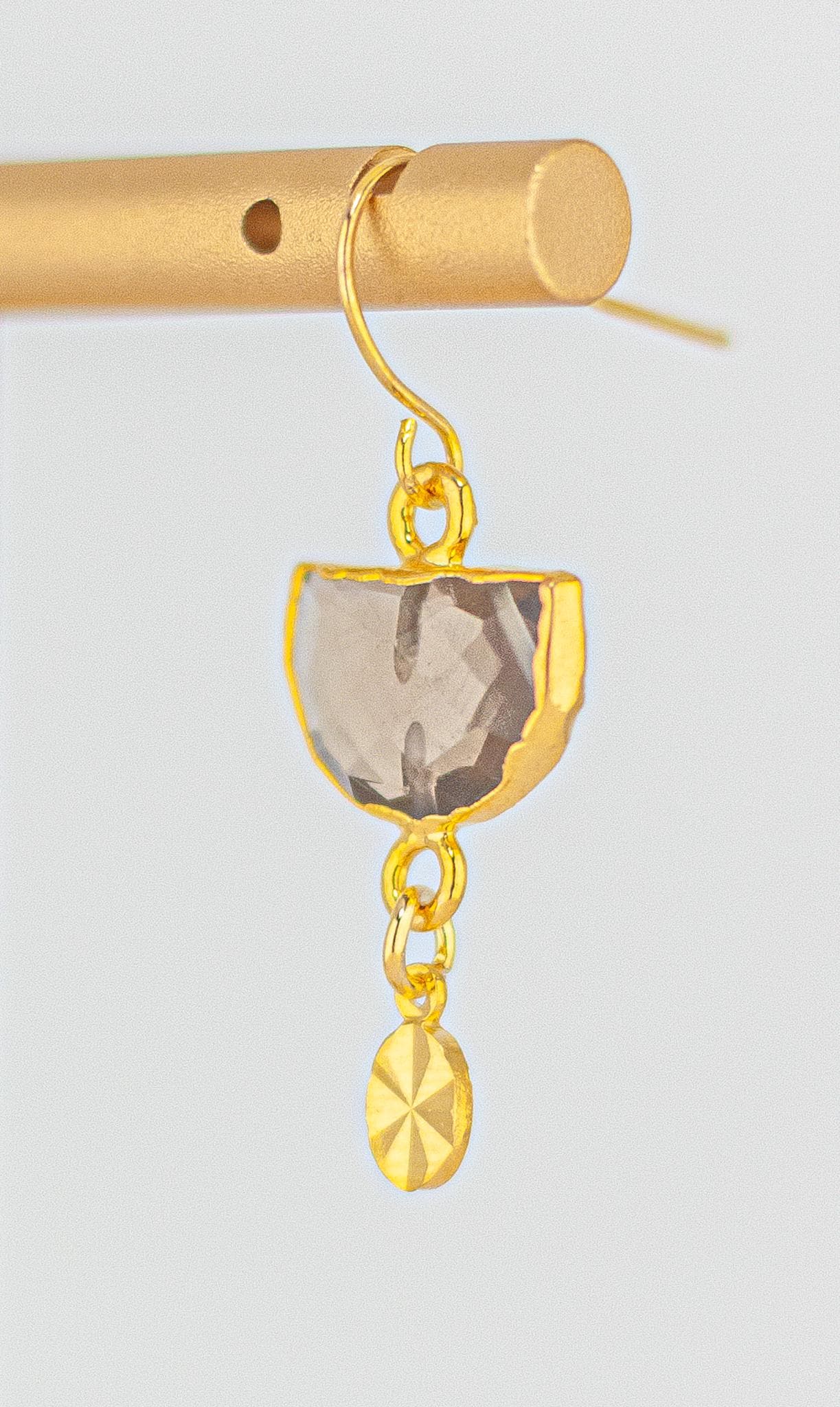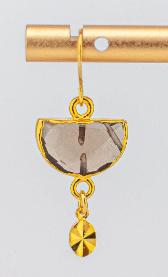 Experience the mesmerizing beauty of our dazzling Smokey Quartz Drop Earrings! The semi-transparent brown quartz stones delicately creating a stunning display warm amber tones, that captures the and reflects light in the most enchanting way. These beautiful quartz crystal earrings have a regal pairing of warm brown and gold tones to complement any style. These elegant and stylish gold drop earrings add a touch of sophistication to any outfit, embodying everlasting beauty and timeless glamour. Perfect for any occasion, these vintage-inspired quartz earrings are a must-have addition to your jewelry collection. Capture attention and elevate your crystal jewelry collection with these unique dazzling gold gemstone dangle earrings, make them yours today.