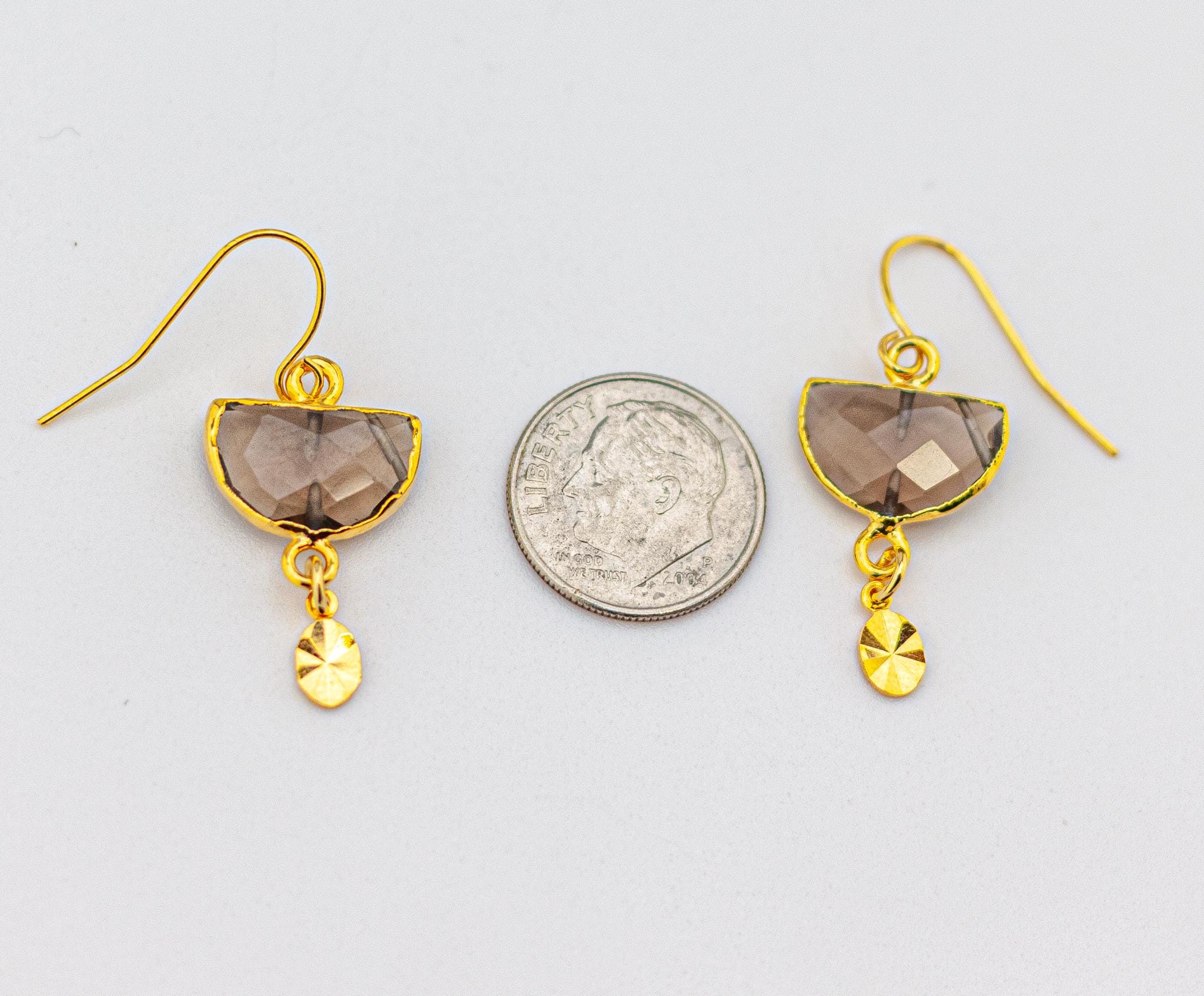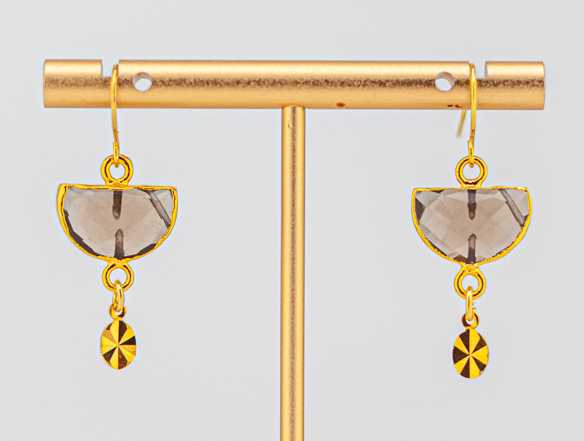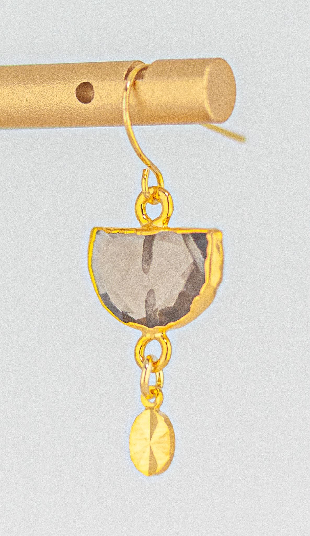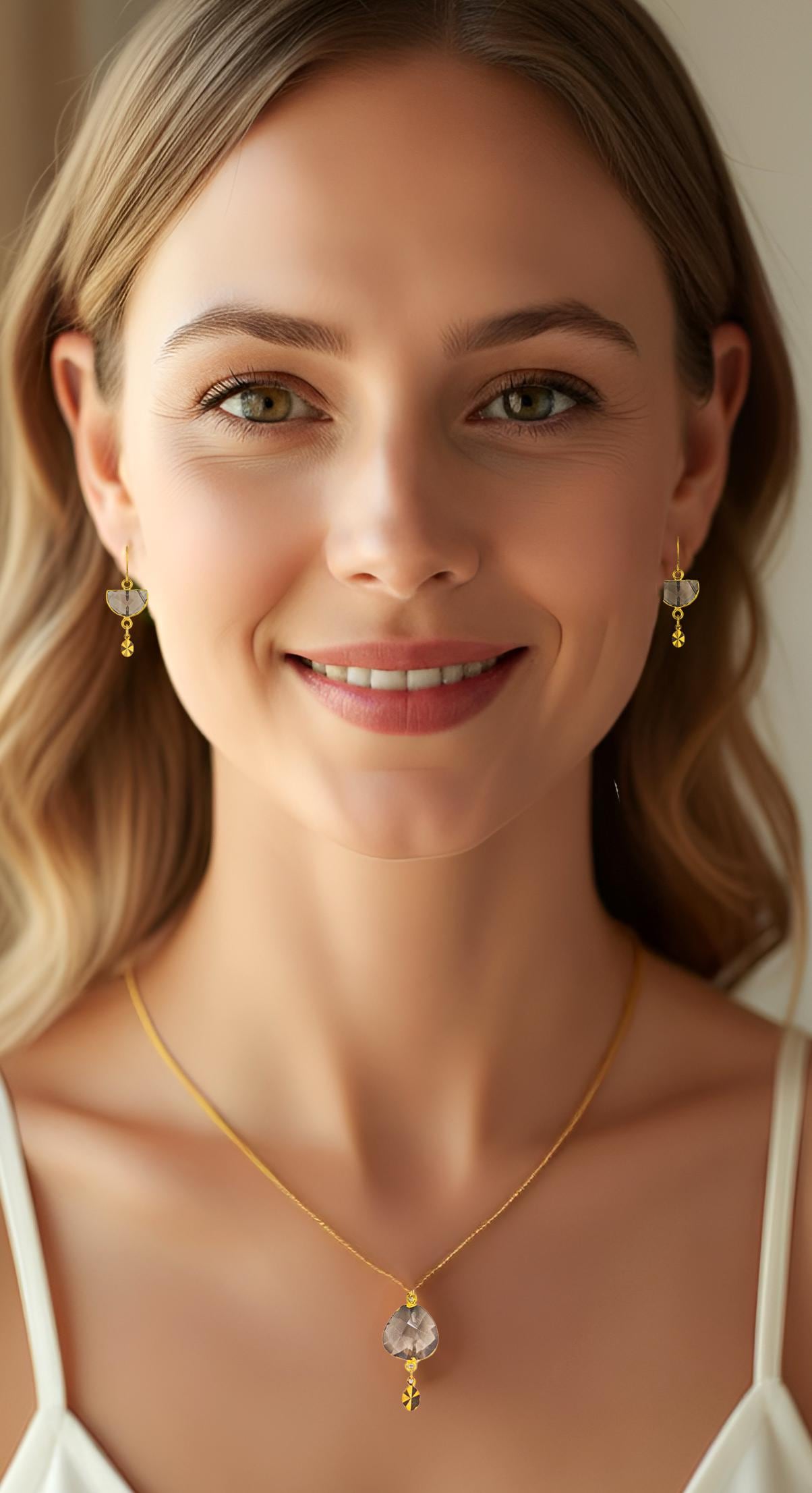 Experience the mesmerizing beauty of our dazzling Smokey Quartz Drop Earrings! The semi-transparent brown quartz stones delicately creating a stunning display warm amber tones, that captures the and reflects light in the most enchanting way. These beautiful quartz crystal earrings have a regal pairing of warm brown and gold tones to complement any style. These elegant and stylish gold drop earrings add a touch of sophistication to any outfit, embodying everlasting beauty and timeless glamour. Perfect for any occasion, these vintage-inspired quartz earrings are a must-have addition to your jewelry collection. Capture attention and elevate your crystal jewelry collection with these unique dazzling gold gemstone dangle earrings, make them yours today.