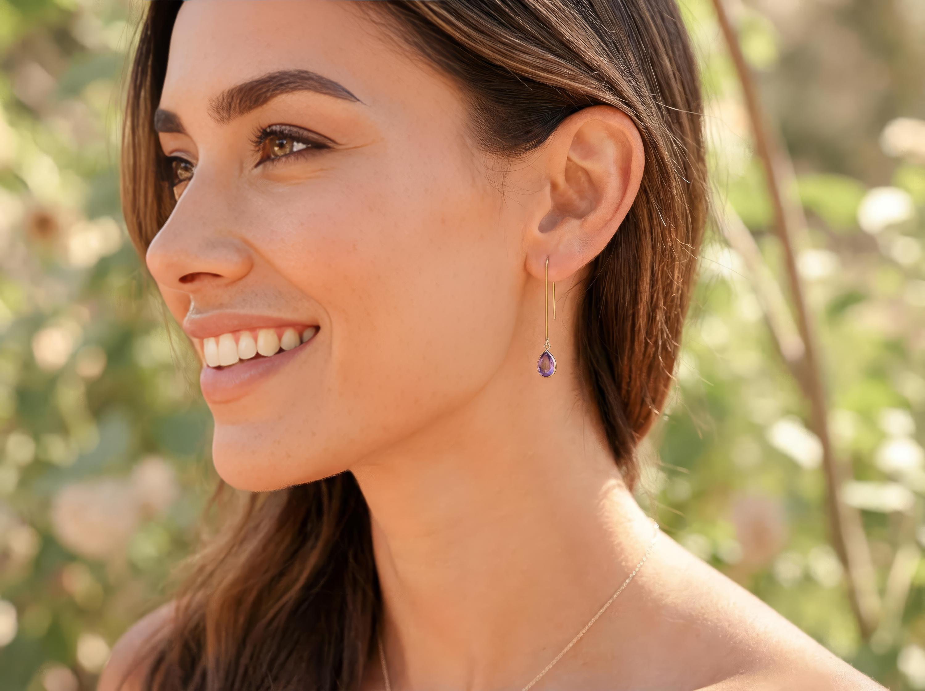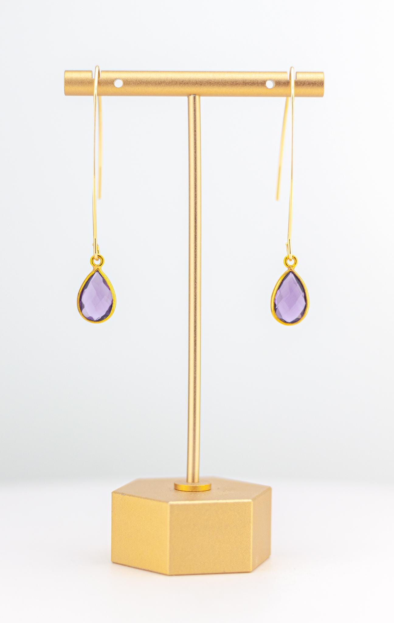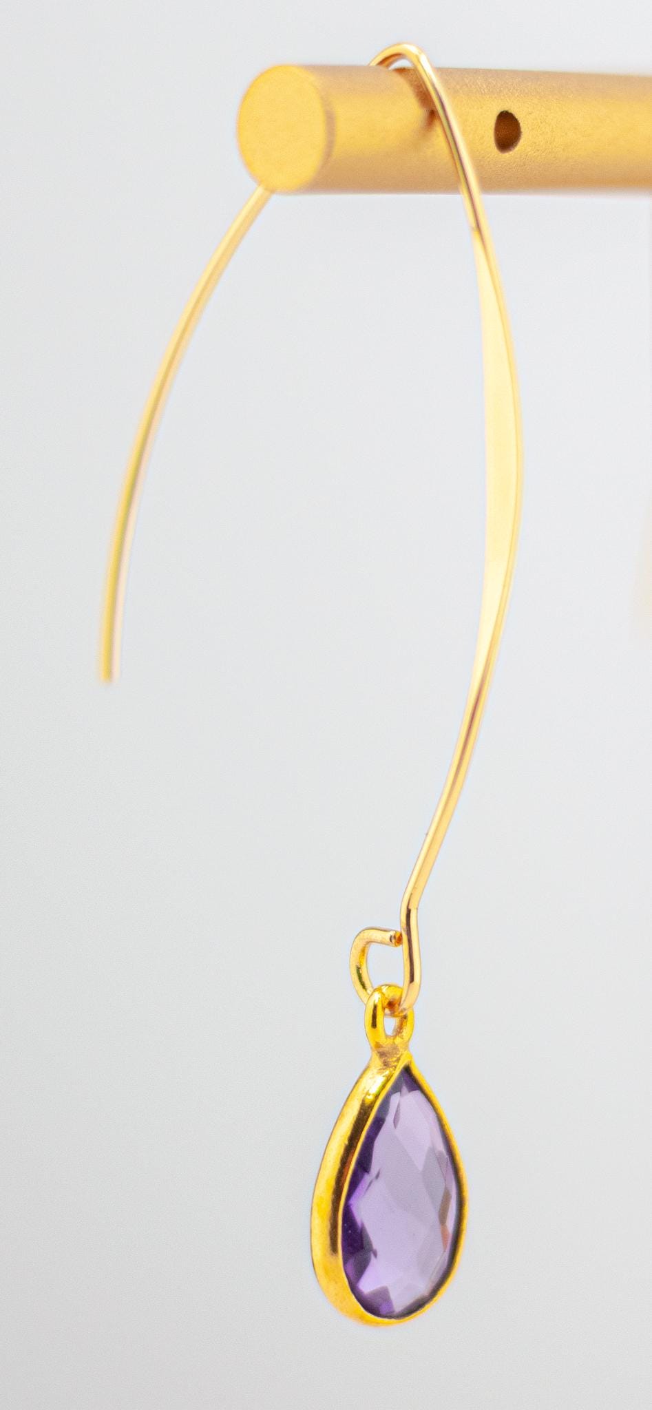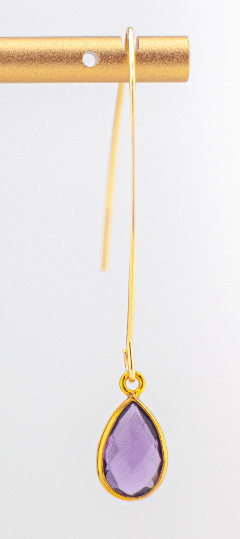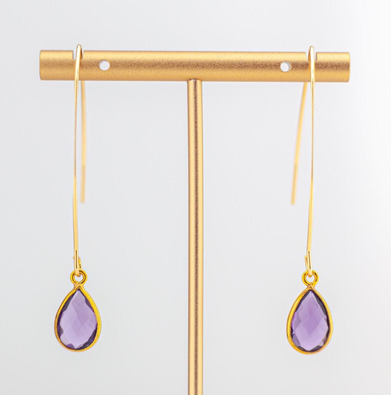 Add a touch of feminine elegance and simplicity to your amethyst jewelry collection with these delicate Gold Amethyst Earrings. Designed for a minimalist yet sophisticated look, these long gold earrings feature light lilac amethyst gemstones in sparkling pale lavender hues. The lightweight modern gold fishhook style ensures lightweight comfortable wear, making them perfect for everyday elegance or a refined statement for special occasions. Crafted with a dainty and delicate design, these minimalist amethyst earrings offer effortless versatility, pairing beautifully with casual and formal outfits alike. Whether you're looking for a timeless gift or a unique addition to your purple jewelry collection, these dainty and sparkling purple gemstone earrings are a must-have.