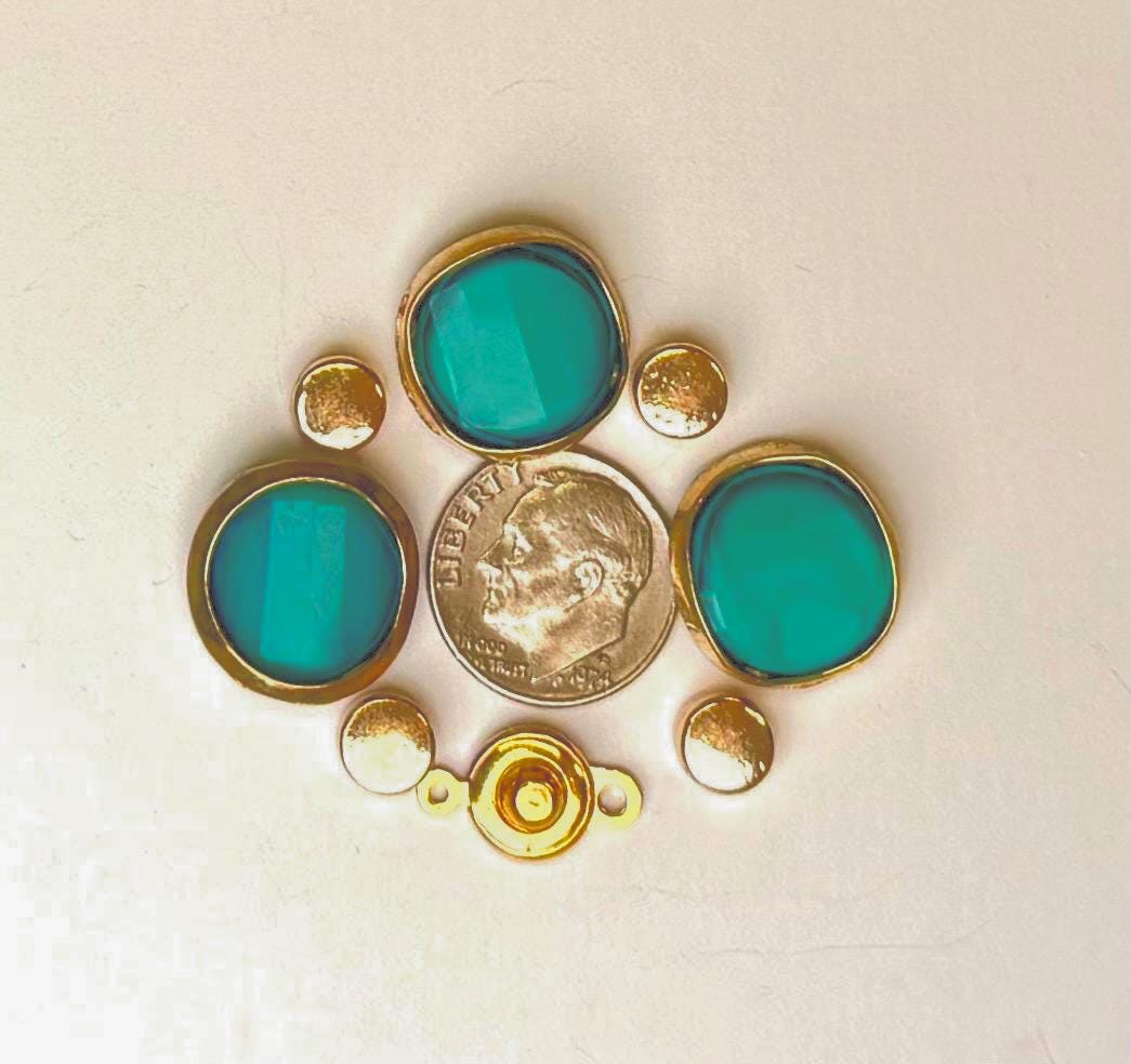 • Shimmery teal blue and gold glass beads.Faceted freeform round 16 mm beads.