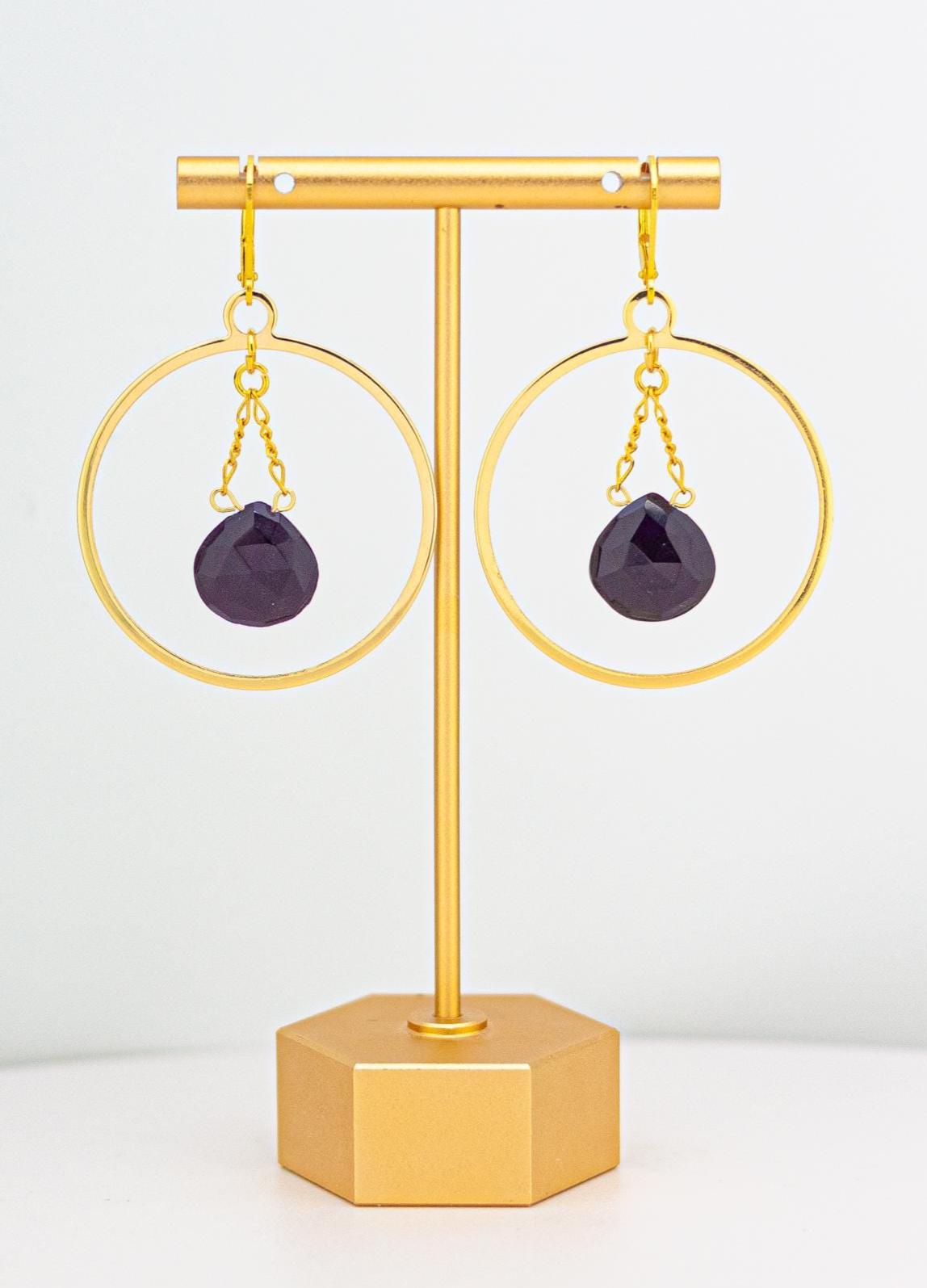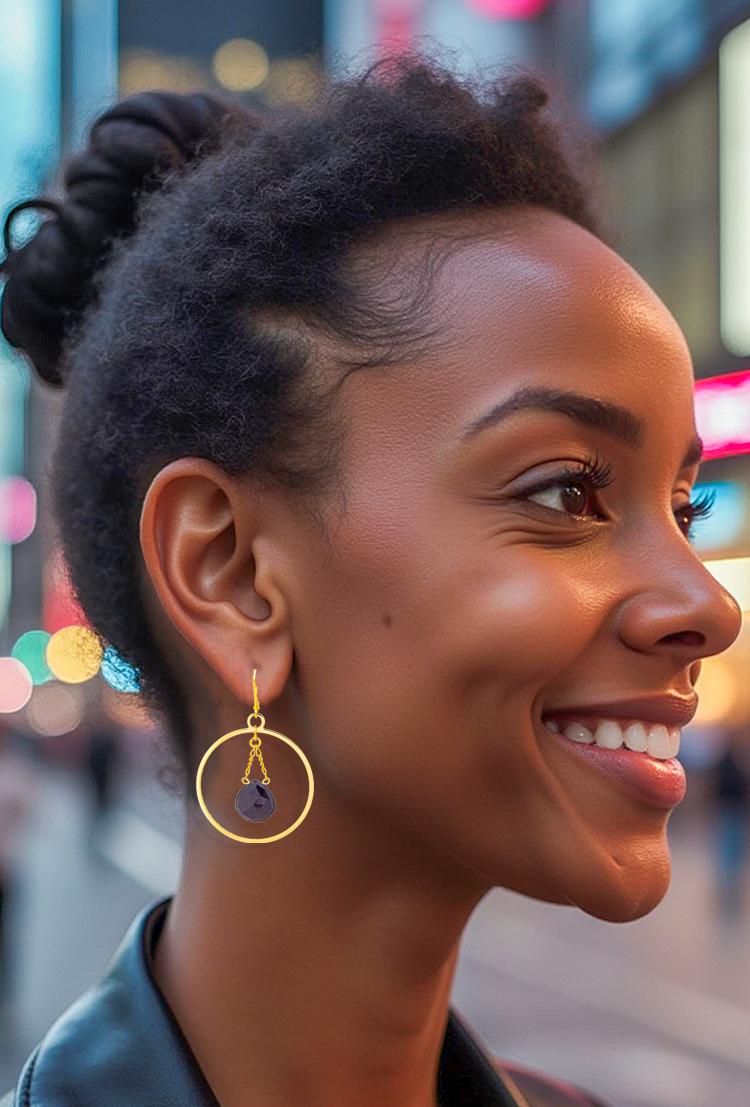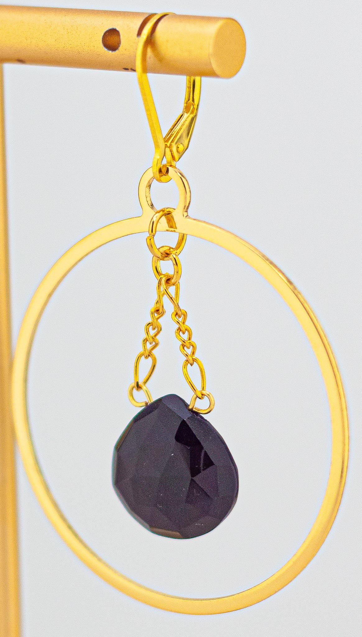 The vibrant bright pink shade of the chalcedony stones beautifully contrasts with the gold hoops, creating a playful and unique look that's perfect for a night out. Adorned with dazzling teardrop-shaped pink chalcedony beads, these boho chic earrings exude modern elegance and radiate a glamorous aura. Plus, with their secure and comfortable lever back closure and 2-inch length, they are as practical as they are chic. Elevate your style with these large gold hoop earrings, they are guaranteed to make a statement and attract attention.